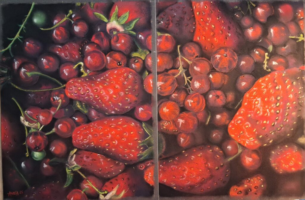 AU JARDIN Hortensias bleus – Version 2026 – Pastel sec – 50 x 70 Fraises et groseilles – Diptyque – Pastel Sec – 2025 Coccinelle sur une marguerite – Pastel sec – 30×40 Chou – Pastel sec – 30×40 Vrai pastel / Faux collage : Marguerite – Pastel sec – 30 x 40 – 2026 iris bleu – 2026 – Pastel Sec – 30 x 40 Marguerite sauvage – Pastel sec – 50×70 Libellule et lavande. Pastel sec. 30×40 Rose rose. Pastel sec. 30×40. D’après une photo de Catherine Dalberto, avec son autorisation. Pomme – Pastel sec – 30×40 Hortensias et abeille – Pastel sec – 30×40 Pissenlit – Pastel sec – 30×40 Iris bleu – Pastel sec – 50×70 Hortensias bleus – Pastel sec – 30×40 Marguerite rosée – Pastel sec – 30×40 Fleurs de cognassier – Pastel sec – 30×40 Gerbera de Marie – Pastel sec – 30×40 Voir plus Afficher moins