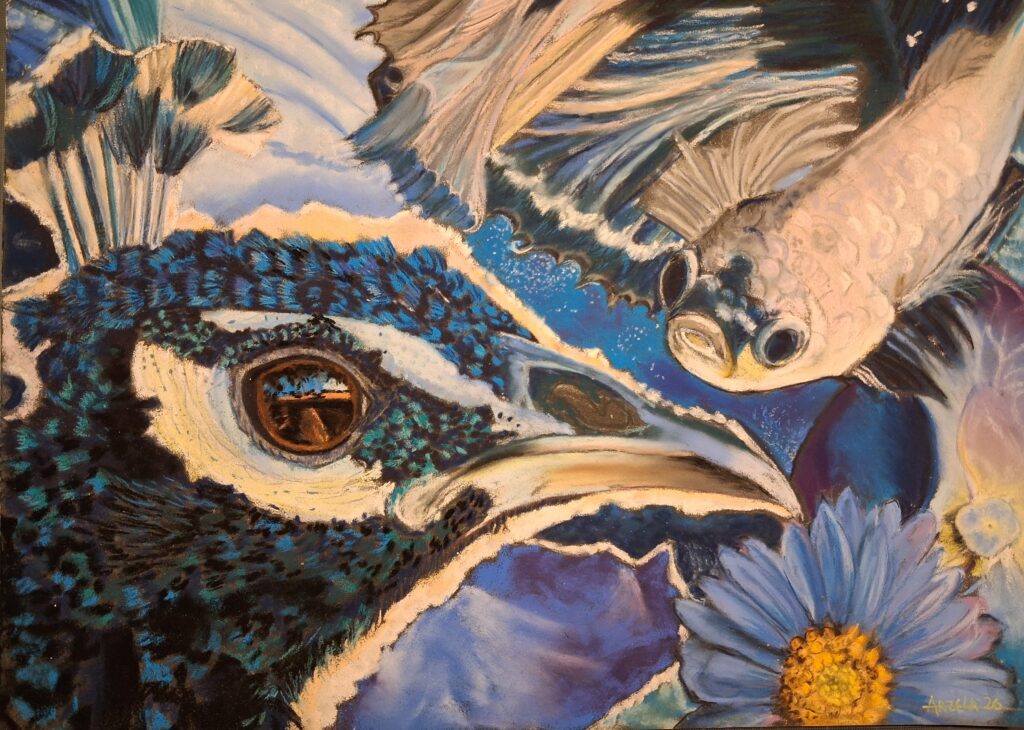 Un petit poisson, un petit oiseau – Pastel sec – 30 x 40 – 2026